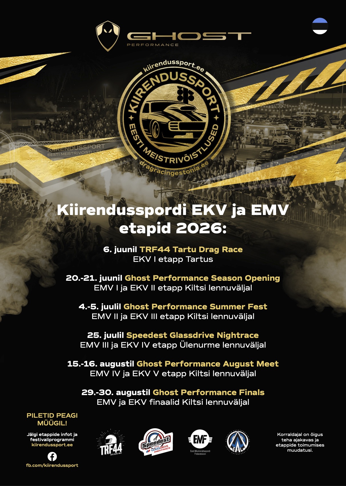 Siin on ametlik 2026. aasta kiirendusspordi kalender.EMV Kiltsi etappide täpne päevade arv (kas 2 või…